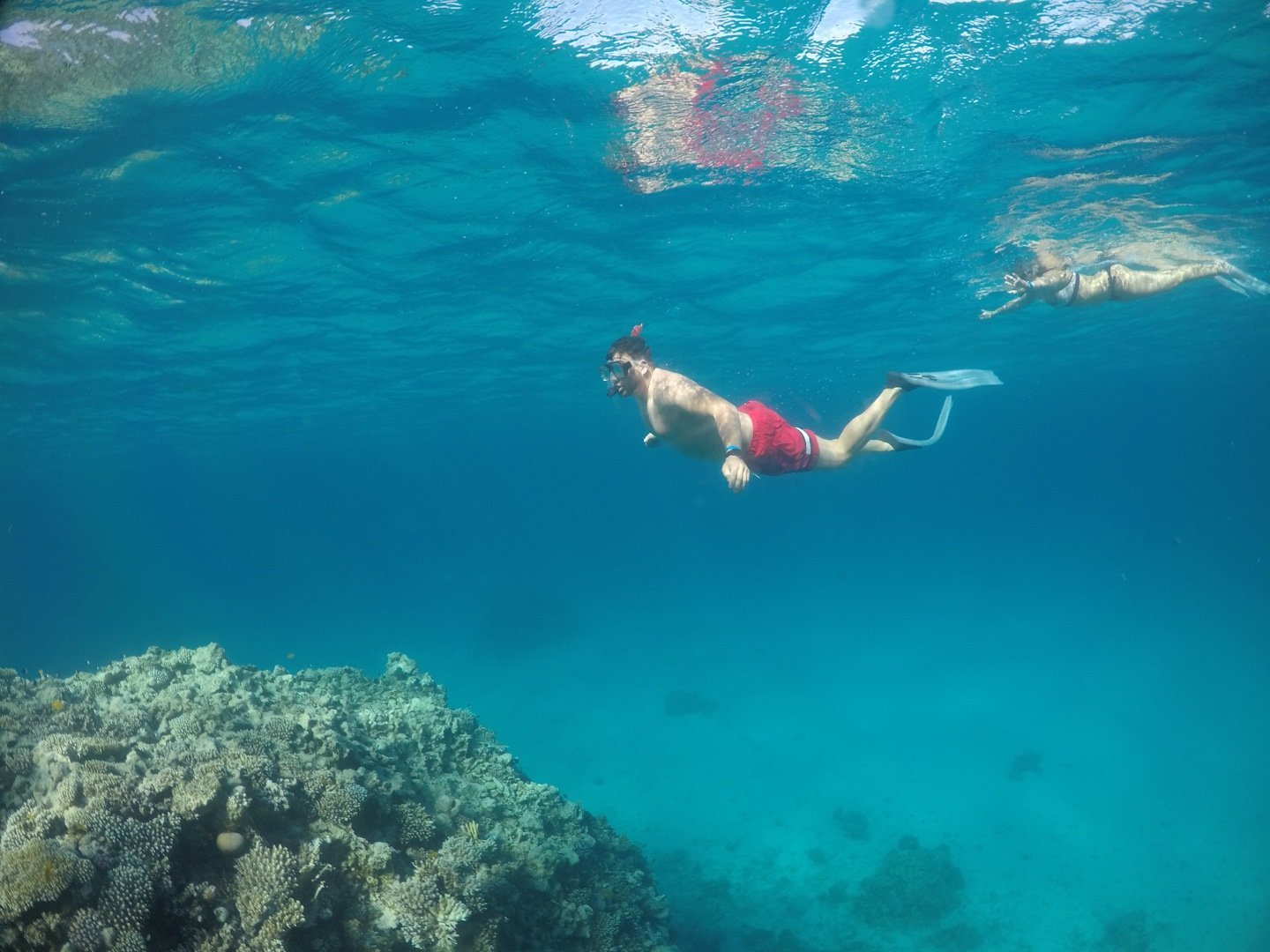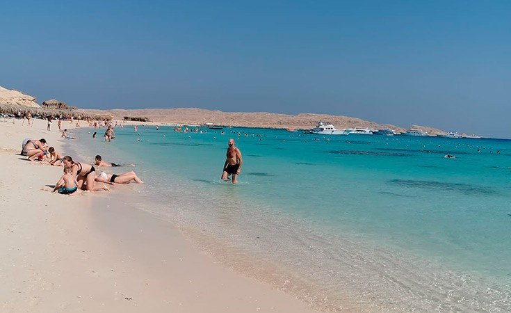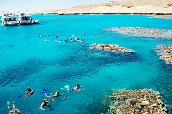 Return to the boat for lunch. Sample a delicious buffet with wonderful views before getting ready for the next stop: Orange Beach at Giftun Island. On arrival at Giftun Islands National Park, relax in the crystal water at the white sandy beach for 2 hours. Take photos and swim at the island beach.
