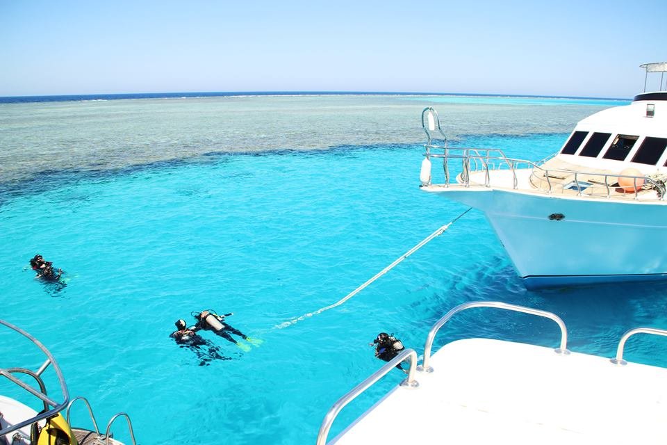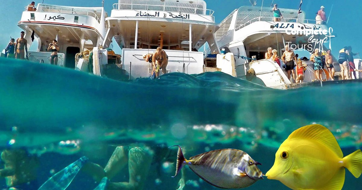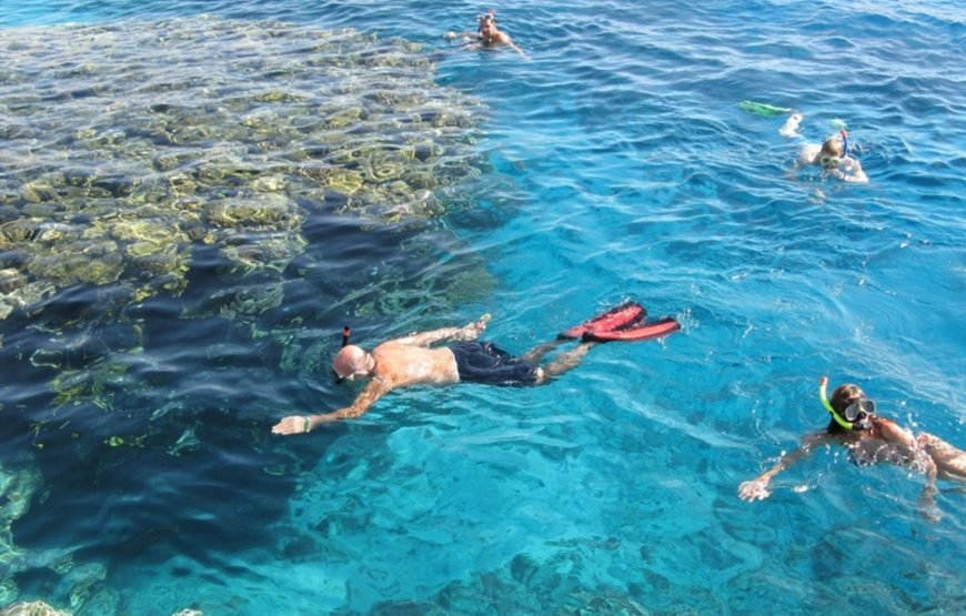 After hotel pickup, transfer to the yacht marina in an air-conditioned vehicle. Board the boat and relax on board, enjoying stunning views of the Red Sea. Then, stop at the first snorkeling spot, where you can snorkel along the corals, which are millions of years old, and see hundreds of fish.