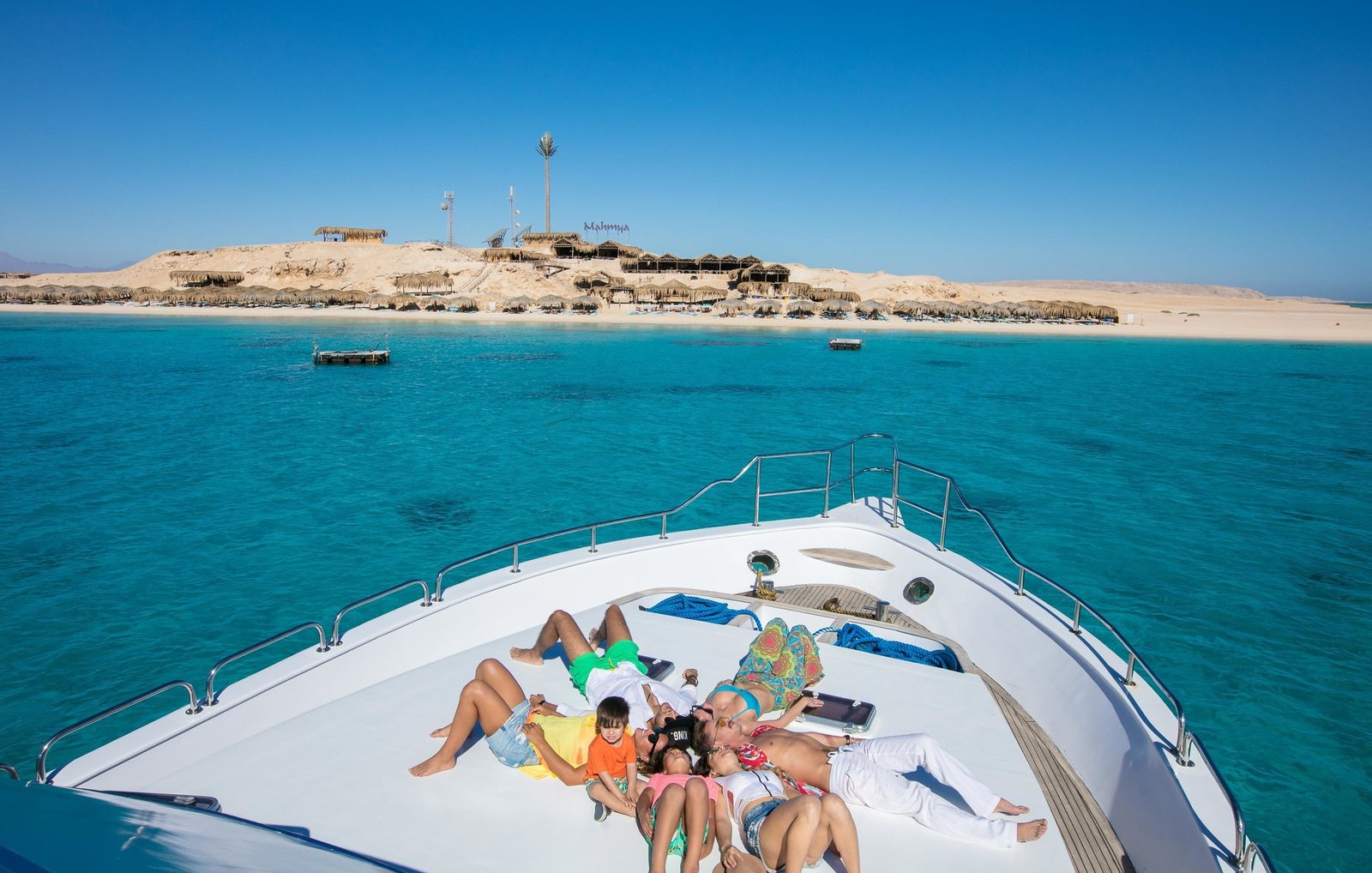 Mahmya Beach is on the southern shores of the Giftun Island National Park off the coast of Hurghada . Mahmya in Arabic means “Protected Area”. To protect the coral reef and its marine inhabitants, the boats moor at buoys off the pristine bay, and you will be taken to the shore by smaller boats.